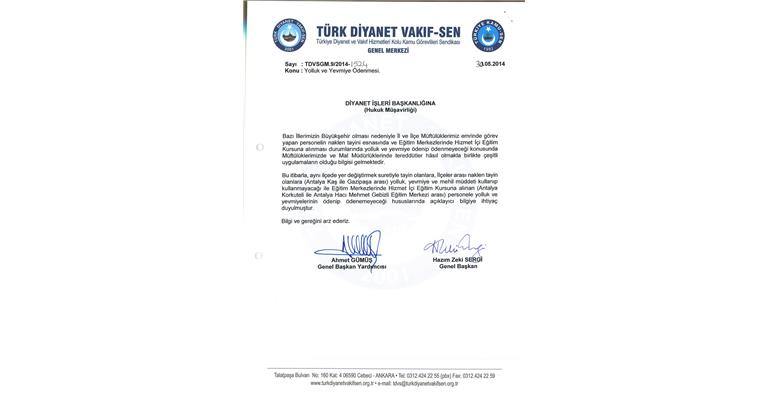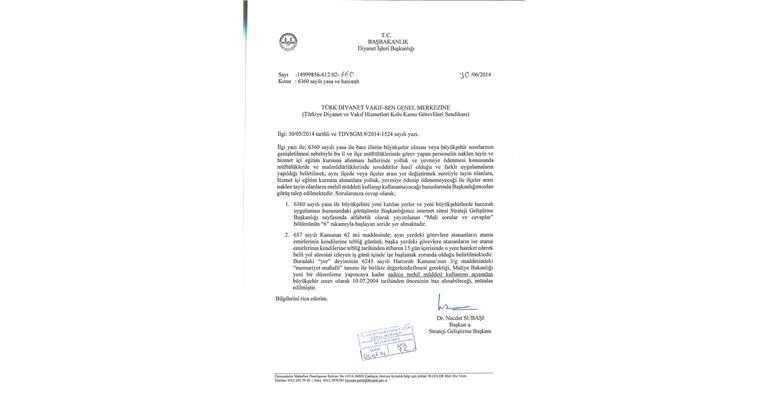 Sendikamızın ve Diyanet İşleri Başkanlığı`nın yazıları:
