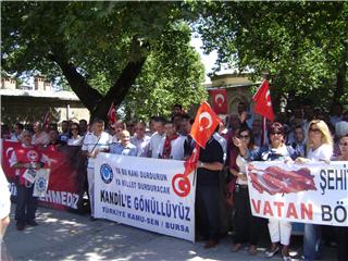TÜRKİYE KAMU-SEN BURSA İL TEMSİLCİSİ V.HİLMİ ŞANLI’NIN 23 AĞUSTOS 2012 TARİHİNDE ORHANGAZİ PARKINDA TERÖRE LANET KİTLESEL BASIN AÇIKLAMASI METNİDİR.