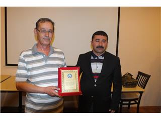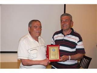 Emekli olan üyelerimiz Paşa NEZİR,Salih TUTUCU,Tahir YURTOĞLU ve Murat KAYABAŞI` na plaketlerini Her biri ayrı hatıra ve anılarla bir yıldız olan bu arkadaşlarımıza otelin toplantı salonunda Genel Başkan Yardıncıları Kenan AK, Ahmet GÜMÜŞ` Eski Yönetim Kurulu Üyesi İbrahim BATUN ve Diyanette Uzman Ahmet KESKİN takdim etti.