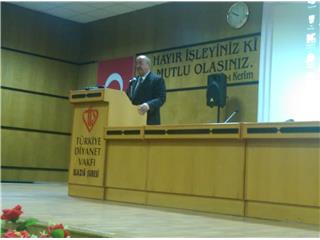 Genel başkanımız Hazım Zeki SERGİ de din görevlilerimizin haftasını kutlayarak yaptığı konuşmada hükümetin memurların haklarını heba ettiğini, din görevlilerimizin sorunlarını bir taslak halinde Diyanet İşleri Başkanımız Sayın Mehmet GÖRMEZ e verdiklerini, Din görevlilerine uygulanan Rotasyonun sakıncalarını, atama ve yer değiştirme yönetmenliğindeki çarpıklığı anlattı. Yıllarını diyanete veren başkanlığımızın omurgasını oluşturan din görevlilerimizin emekli olmadan hac veya umreye götürmesi gerektiğini. birçok görevli kardeşlerimizin o kutsal mekânları ziyaret etmeden emekli olduğunu dile getirdi. Din görevlilerimizin Başkanlık ve Müftülüklere bakış açısını da değerlendirdi. Emekli olan görevlilerimizin birçoğunun Başkanlığımıza ve Müftülüklerimize dargın olduğunu bunun sebeplerinin araştırılmasını, başkanlığımızın ve Müftülüklerimizin din görevlilerine karşı tutum ve davranışlarının yeniden gözden geçirmesi gerektiğini söyledi.
