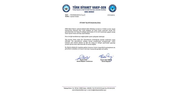 6360 Sayılı Kanun uyarınca Büyük Şehir Belediye sınırlarının İl Mülki sınırlar olarak belirlenmesi itibarıyla Köy Tüzel kişiliğine ait Cami İmam evlerinde oturan Din görevlilerinden her hangi bir tebligat yapılmadan 01.01.2014 tarihinden geçerli olmak üzere lojman kirası alınması istenmektedir.