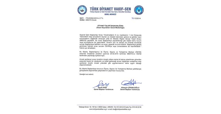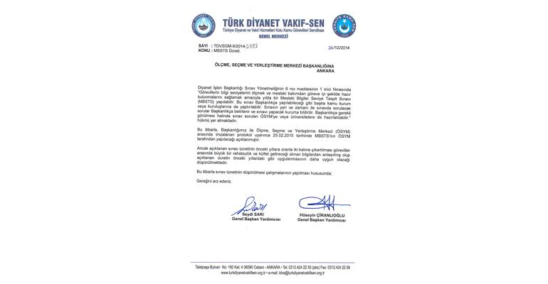 Ancak açıklanan sınav ücretinin önceki yıllara oranla iki katına çıkartılması görevliler arasında büyük bir rahatsızlık ve külfet getireceği alınan bilgilerden anlaşılmış olup açıklanan ücretin önceki yıllardaki gibi uygulanmasının daha uygun olacağı düşünülmektedir.