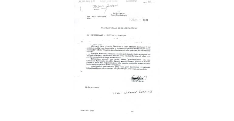 Personel Başkanlığına yazı yazarak görüş istemiş alınan cevapların fotokopileri