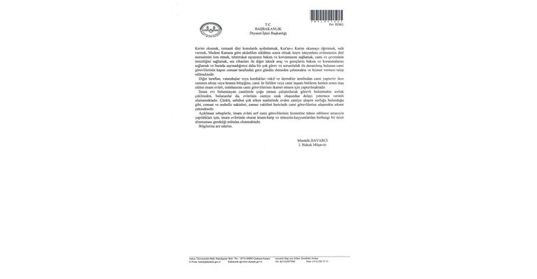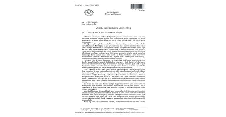 Bu itibarla rahatsızlık meydana getiren konunun hukuk müşavirliği ile görüşülerek din görevlilerini rahatlatıcı bir kararın alınması hususunda gereğini arz ederiz.