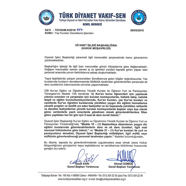 SAYI : TDVSGM.9/2015 / 527 28/03/2015